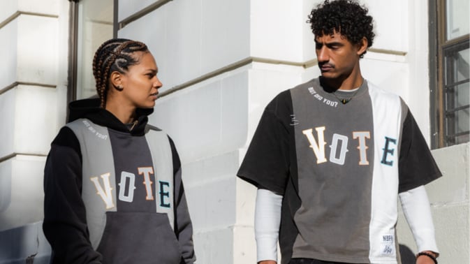 If we had to vote for best merch, it wouldn’t go to any candidate, instead, it would go to this amazing campaign to get out the vote, a collab between designer Desyree Nicole, TUNL, and NBPA Foundation. What’s TUNL? The merging of fashion and sports. According to The Zoe Report, TUNL was initially inspired by “tunnel outfits,” a.k.a. the look an athlete wears before a game. Check out the merch drop on IG and their reaaallly cool but simple shop (we love the “paved by TNL” tagline). Fashion + sports + merch = WIN.