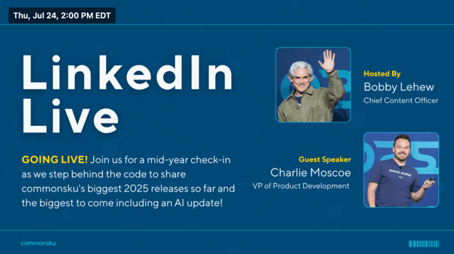 It's time for a mid-year check-in with our VP of Product Development, Charlie Moscoe, as he steps out from behind the code to share commonsku's biggest 2025 releases so far and the biggest to come --- including an AI update! In 15 minutes we'll share our biggest feature drops to-date, a future roadmap vision for our Advanced and Enterprise users, our AI-first attitude (plus a sneak-peek into developments) and more, sign up now!